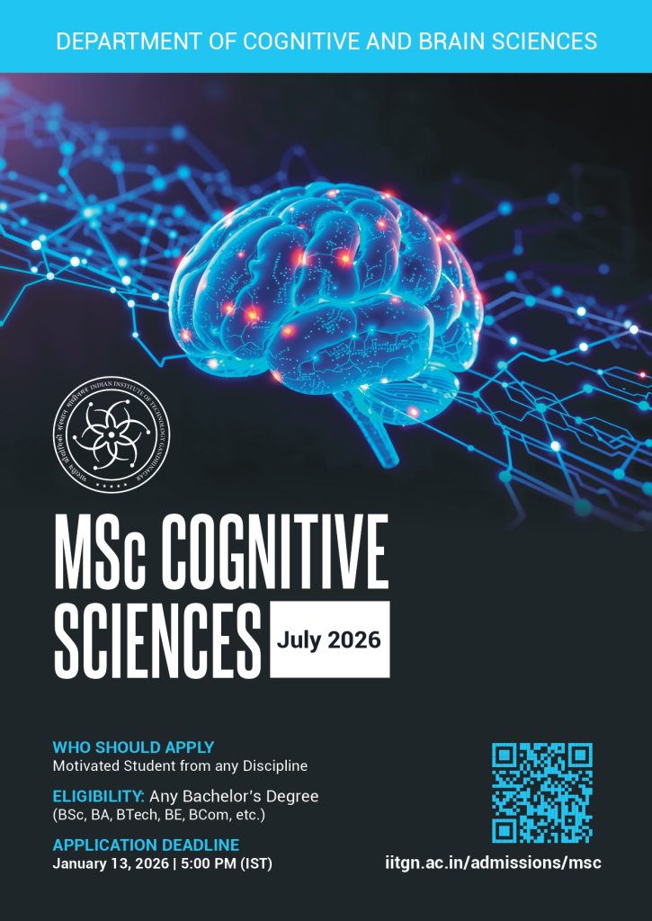 Students who have a bachelor’s degree (e.g. BA, BSc, BTech, BCom, MBBS) in any discipline with a minimum of 55% (5.5 CGPA for students with letter grades/CGPA) aggregate marks for General/OBC category candidates and at least 50% (5.0 CGPA for students with letter grades/CGPA) aggregate marks for SC, ST and PD category candidates in the qualifying degree, are eligible to apply for admission to the Master’s program in Cognitive Science. Students who would be completing their bachelor’s degree in the current academic year are also eligible to apply.
